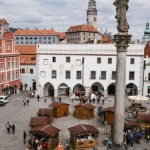 Náměstí Svornosti, główny rynek w Czeskim Krumlowie zasługuje na uwagę ze względu na swoją historię i bogate zdobienia. Plan kwadratu, rozkład domów po bokach i otwarcie ulic przypominają, że miasto powstało w średniowieczu. Prawdopodobnie najciekawszy obiekt, w którym obecnie mieści się ratusz, znajduje się pod adresem náměstí Svornosti 1. Jego front powstał na początku XVII wieku przez połączenie dwóch starszych budynków gotyckich. Na fasadzie namalowano cztery herby: Eggenbergów, ziem czeskich, Schwarzenbergów i herb Czeskiego Krumlowa. Nad rynkiem dominuje kolumna morowa z figurą Niepokalanej Najświętszej Marii Panny i ośmiu świętych, patronów miasta i obrońców przed dżumą.